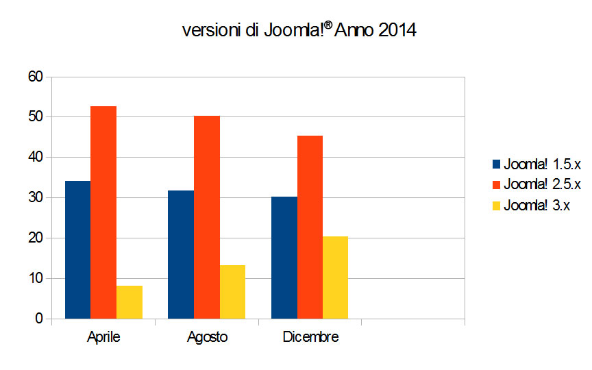 La versione 2.5.x è ormai consolidata e conquista il 50% rispetto alle versioni precedenti e all’ultima 3.3.6 che incomincia a far sentire la sua presenza con un buon 13,36%.