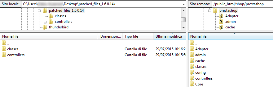 Attenzione perchè se siete consapevoli di aver modificato questi file per vostre esigenze lavorative, dovrete eseguire una verifica molto più approfondita, trovate delle utili istruzioni alla sezione “Do it yourself” di questa pagina ufficiale delle patch di Prestashop su github.